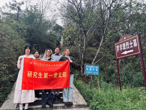 各党支部怀着对革命先烈的深切缅怀,组织党员代表纷纷前往属地烈士陵园开展实地祭扫活动,在追思中汲取奋进力量,在誓言中坚定使命担当。经贸学生第一、二支部、会财系学生第二党支部的党员与积极分子就近前往岳麓山蔡锷墓、广州烈士陵园等地敬献花篮、默哀致敬,并开展墓区清扫;工管系学生第一、二支部、数管系学生支部齐聚罗学瓒烈士陵园,重温入党誓词,以铿锵誓言传承红色基因;研究生第一、三党支部代表整齐列队于株洲烈士陵园英烈墙前,以铿锵誓言致敬先烈精神,表达将红色基因融入血脉的坚定信念。