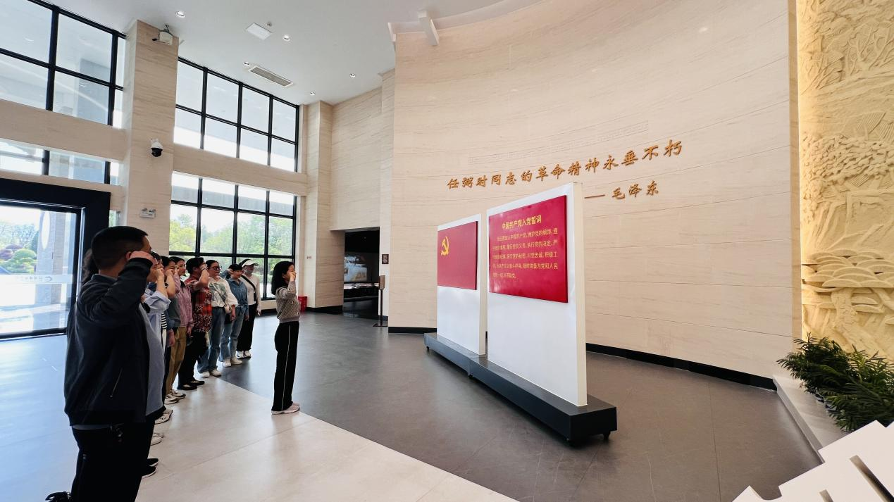 活动中,支部书记陈琴以《学八项规定 守纪律规矩》为题讲授微党课,结合任弼时同志廉洁奉公的生平事迹,深入解读中央八项规定精神的时代内涵。随后,在纪念馆任弼时像前重温入党誓词,以铿锵誓言表达对革命先辈的深切缅怀和传承红色基因的坚定决心。