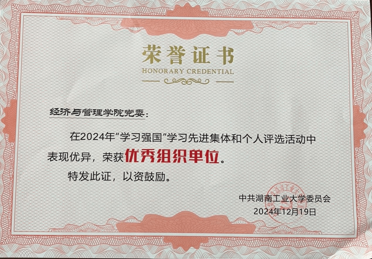 近日,2024年度校园“学习强国”学习先进集体和个人评选评选结果公布,我院在2024 “学习强国”学习中,荣获优秀组织单位,我院教师党员9名以及学生党员10名学生荣获“学习标兵”称号。