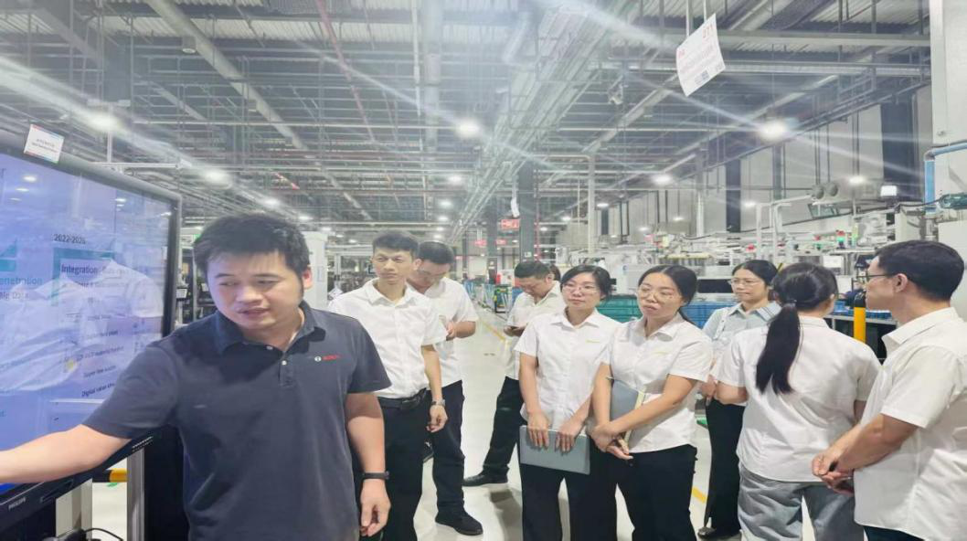 学员们首先走进博世长沙101工厂的汽车防抱死制动系统(ABS)电机装配车间,实地观摩了工业4.0示范生产线、AGV智能物流设备、数控车床智能监测装置及产品包装视觉检测系统。